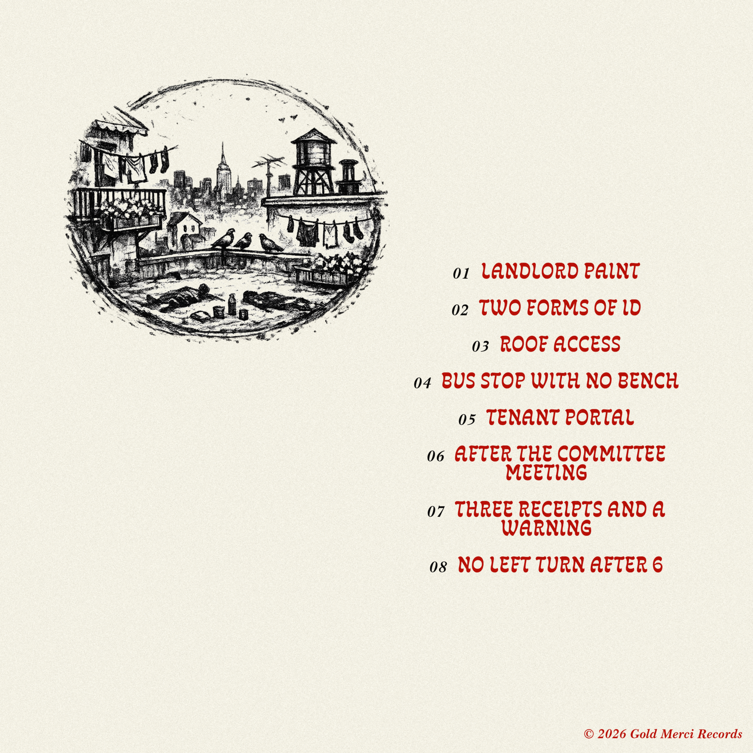 Municipal Sleeper wanted a stark, hand-drawn album world for a Parquet Courts-adjacent art-punk band: dry, urban, bored, funny, and slightly irritated. The cover needed to feel handmade but considered, using rough charcoal/pencil texture, Xerox grain, awkward negative space, and crude-but-intentional lettering.